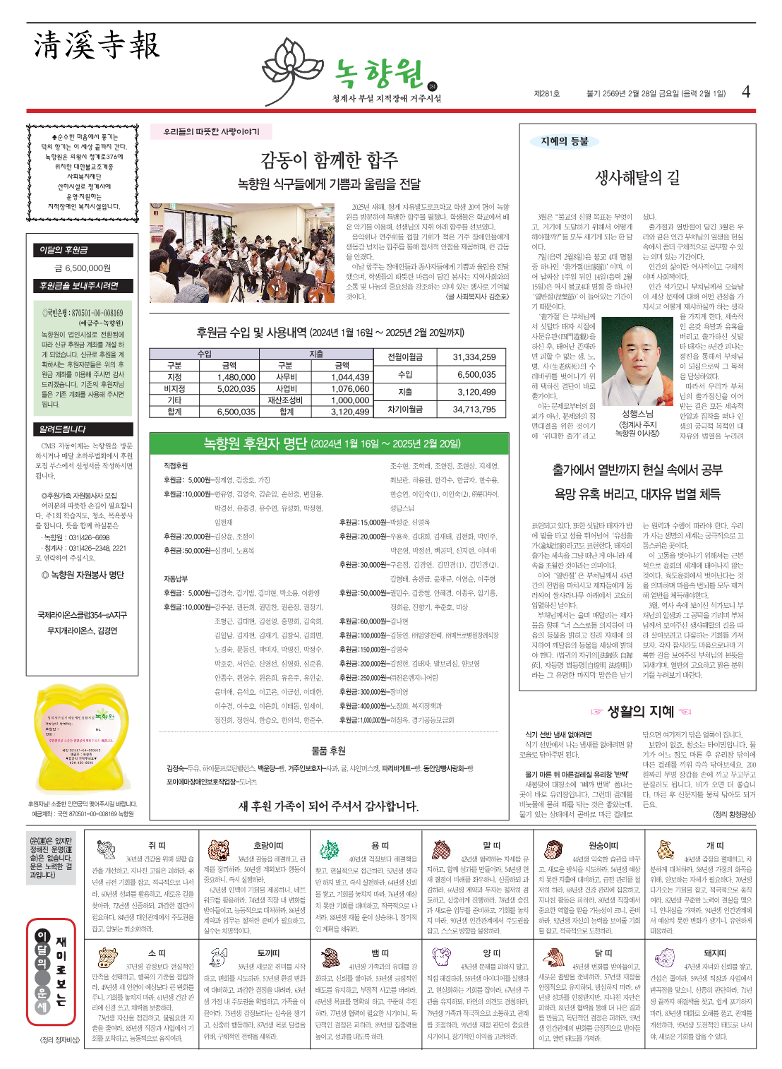청계사보 <제281호> 2025년 2월 28일 금요일 페이지 정보 작성자 관리자 작성일2025.08.03 조회64회 댓글0건 본문 청계사보 전체 보기▶▶▶ http://www.chungkeisa.com/files/sabo/281.pdf 이전글 다음글 목록
