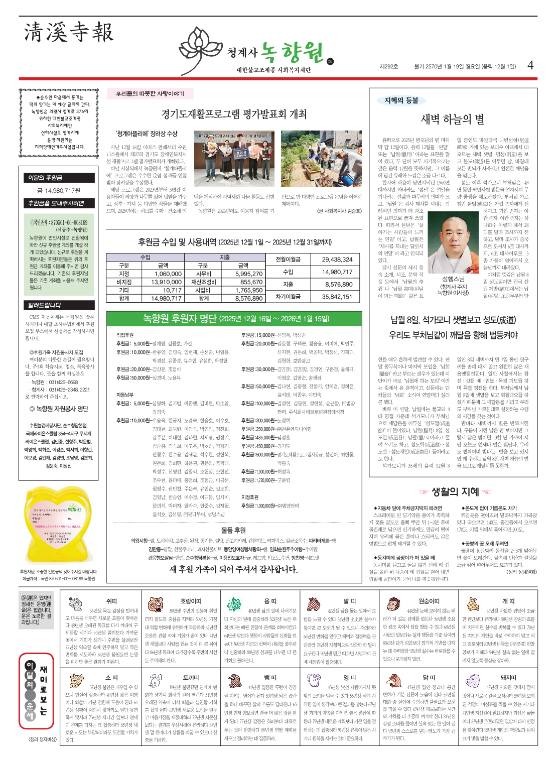 청계사보 <제292호> 2026년 1월 19일 월요일 > 발간물