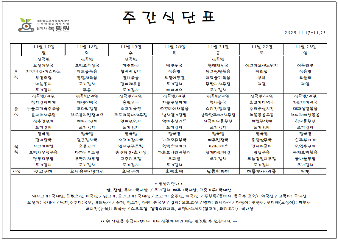2025년 11월 셋째주 > 주간식당