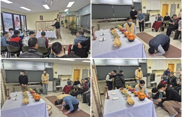 ○ 진행일자: 2026년 2월 13일 금요일 ○ 진행장소: 녹향원 심우정(식당)○ 진행내용 2월 13일, 녹향원에서는 설 연휴를 앞두고 차례를 지냈다. 이용자들은 직원들과 함께 구입한 명절 음식을 곱게 차례상에 올렸다. 녹향원은 종교의 자유를 존중하며, 차례는 참여 의사가 있는 이용자가 주체가 되어 진행되었다. 술잔을 올리고 절을 하는 등 차례의 절차 역시 각 이용자의 선택에 따라 이루어졌으며, 이번 행사는 특정 종교 의식이