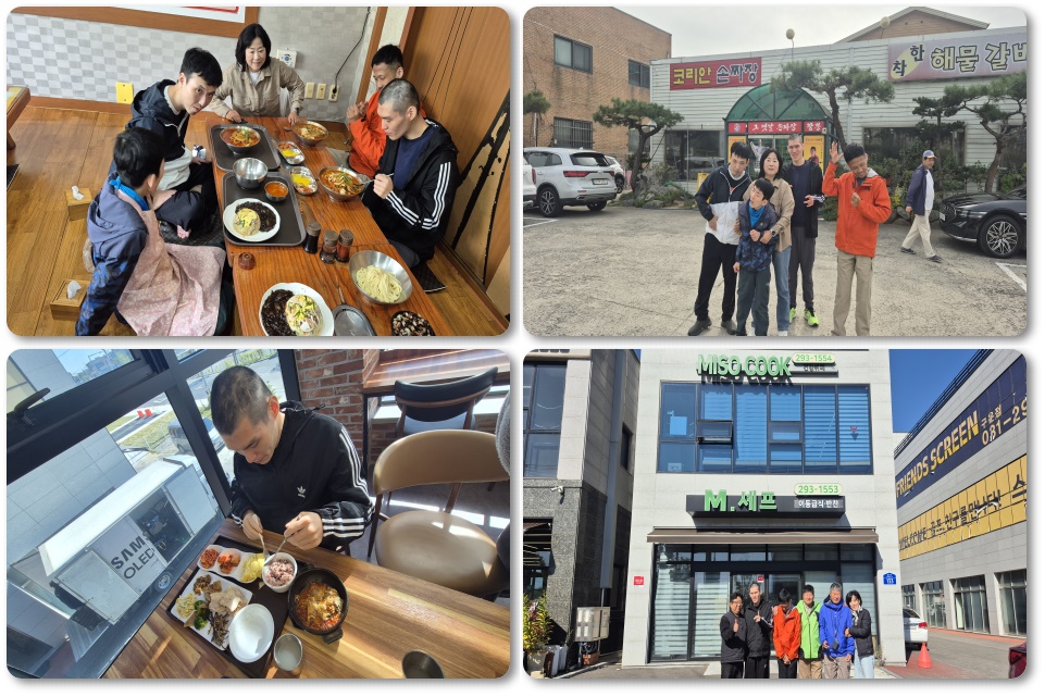 10월 21일과 27일 진행된 ‘맛집랩소디’ 프로그램에서는 이용자들이 화성시 ‘코리안 손짜장’과 수원시 ‘미소쿡’을 방문했습니다. 이동 중 차량 밖 풍경을 감상하며 즐거운 시간을 보냈고, 사전 욕구조사로 선정된 메뉴를 맛보며 모두 만족스러운 식사를 했습니다. 이번 외식활동을 통해 이용자들은 일상의 즐거움과 여유를 느끼며 행복한 추억을 만들었습니다.