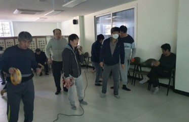 ○ 프로그램: 3월 1차 유치뽕짝(노래연습) ○ 진행일시: 2022년 03월 28일 / 오후 1시30분 ~ 2시30분○ 진행장소: 녹향원 내 ‘반야홀’ ○ 진행내용: 전거주인이 노래방기계를 이용하여 노래부르기○ 후기 3월 1차 유치뽕짝을 시작하게 되었습니다. 노래방기계를 이용하여 선곡한 노래가 나오면 열창하였습니다. 노래보단 탬버린을 좋아하여 치는 거주인이 있으며, 의자에 앉아 타거주인이 노래부르는 모습을 관람하는 거주인도 있었습니다. 노래가 끝날 때마다 박수를 치는 매너도