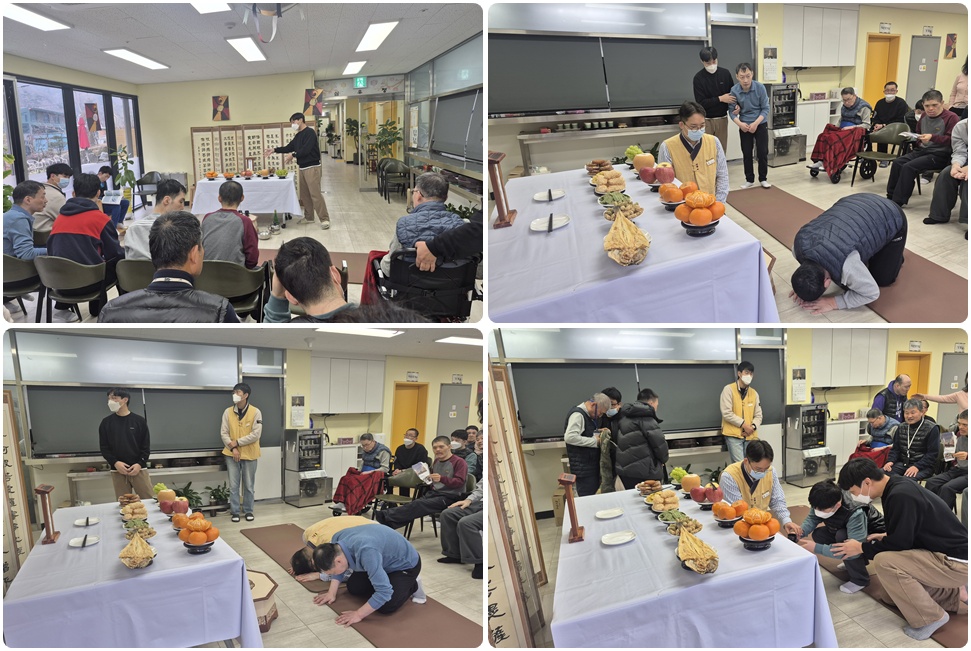 2월 13일, 녹향원에서는 설 연휴를 앞두고 차례를 지냈다. 이용자들은 직원들과 함께 구입한 명절 음식을 곱게 차례상에 올렸다. 녹향원은 종교의 자유를 존중하며, 차례는 참여 의사가 있는 이용자가 주체가 되어 진행되었다. 술잔을 올리고 절을 하는 등 차례의 절차 역시 각 이용자의 선택에 따라 이루어졌으며, 이번 행사는 특정 종교 의식이 아닌 우리 전통 명절 문화를 이어가는 자리였다. 차례를 마친 뒤에는 차례상에 올렸던 음식을 함께 음복하며 떡, 한과, 약과, 과일 등 풍성한 명절 음식을 나누었다. 이용자와 직원이 함께한 이번 차례는 설 연휴의 시작을 알리는 따뜻한 시간이 되었다.